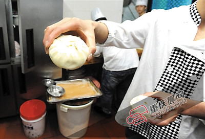 昨日,渝都大酒店頤之時酒樓制作的包子。