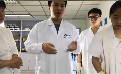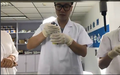 北京智云達技術工程師楊老師和趙老師將準備好的果汁檢測樣品分別進行標號,通過智云達自主研發生產的快速檢測產品:真假果汁速測盒,對果汁樣品進行快速檢測試驗。