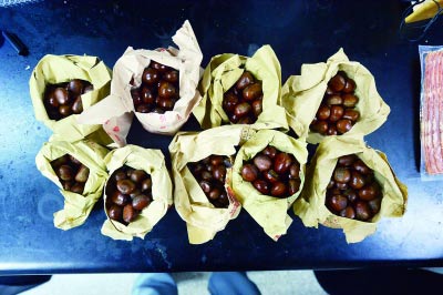 那么,糖炒栗子加糖精的傳言是真的嗎?記者從街頭巷尾的小攤買了9份糖炒栗子送檢。