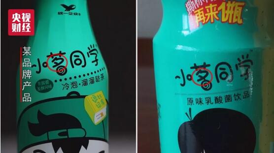 由棗莊初亢食品飲料有限公司,模仿某品牌的小茗同學(xué)的小茖同學(xué)乳酸菌飲品,半個(gè)筆畫的差別足以亂真。