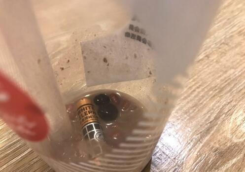 昨日,張小姐透過外賣平臺訂購了三杯85°C飲品,其中一杯是紅豆珍珠奶茶。當(dāng)奶茶喝到快見杯底時(shí),混在在珍珠和紅豆里的一硬物引起了她的注意?!澳滩枥锞尤挥幸还?jié)7號電池!這是要給我補(bǔ)充電解質(zhì)嗎?”張小姐說,電池當(dāng)時(shí)橫置在杯底部,約1/2浸沒在奶茶中和配料中。她懷疑電池應(yīng)該是一開始就混在原料紅豆或珍珠里,或許其他消費(fèi)者也會(huì)“幸運(yùn)”買到“電池紅豆珍珠奶茶”。發(fā)現(xiàn)這一情況,張小姐隨即前往店家交涉。店家愿意給予其10倍奶茶錢款的賠償,被她拒絕了?!爸嬈诽瘘c(diǎn)店85℃食品安全做的如此糟糕,如何讓消費(fèi)者買的放心、吃的放心?!弊钭屗龘?dān)心的是,電池本身帶有毒性,喝了這樣一杯“毒奶茶”,目前也不清楚是否會(huì)對身體造成不良后果。由于昨晚要出門旅行,張小姐并未與店家達(dá)成一致。