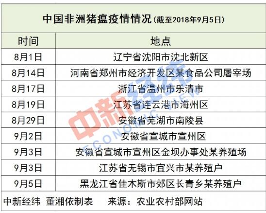 中新經緯客戶端注意到,今年8月初以來,遼寧、河南、江蘇、浙江、江蘇、安徽等地先后發生9起非洲豬瘟疫情。據央廣網報道,從疫情地點來看,較為分散,多位于東北地區、中部地區和江淮地區;而從發病死亡豬的數量看,又都呈現數量大、致死率高的特點。