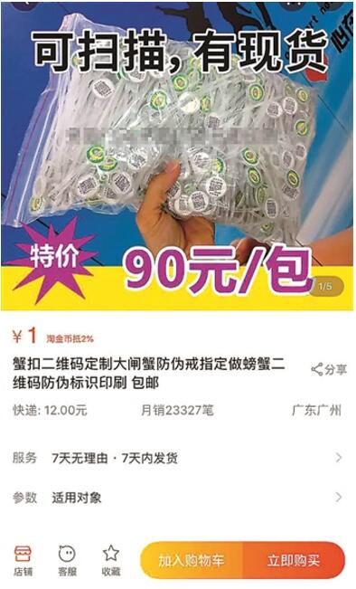不少消費者表示網(wǎng)上出售的陽澄湖大閘蟹真假難辨,甚至連二維碼防偽環(huán)都可以在網(wǎng)上買到。為此,北青報記者聯(lián)系到蘇州陽澄湖大閘蟹行業(yè)協(xié)會的姚主任。